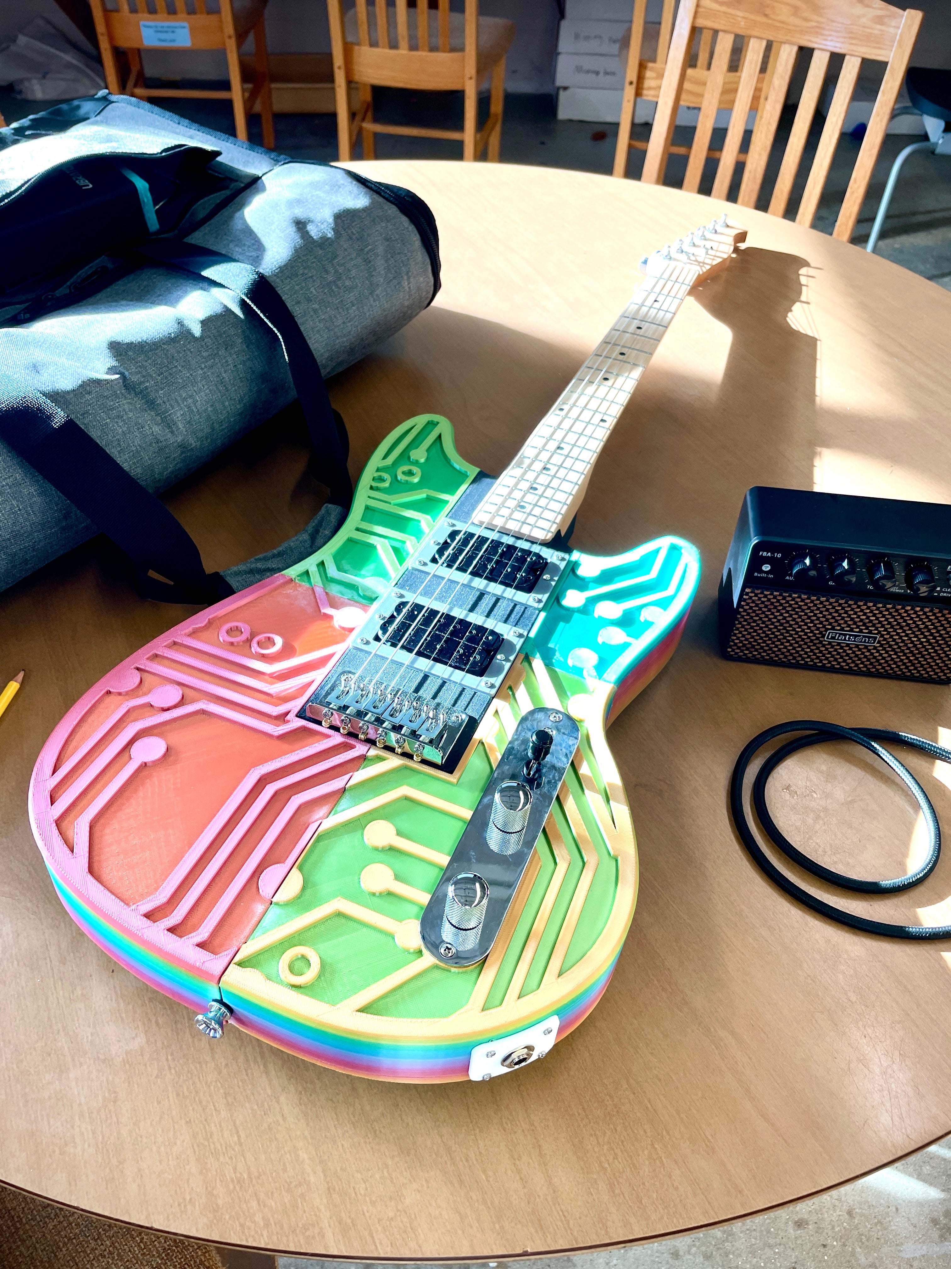 3D printed guitar created by the students at Cooperative Middle School (Straham, NH). Led by STEAM Teacher Jessica Carcerano-Wheeler.