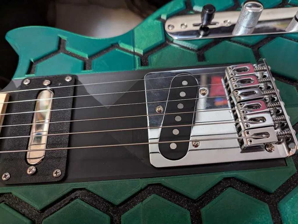 After I got everything, I started printing right away. I was amazed at the quality and work he’s put into everything. The parts all went together perfectly. The hardware and components all came carefully packaged and assembly was a piece of cake. I was honestly very impressed once I got it strung up, set up and plugged in. It sounds great and plays awesome! I have 10 other guitars in my collection and this one is the one I reach for first now.